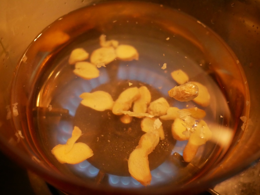 2.다른 곳에 생강과 물1리터 넣고 끓이기